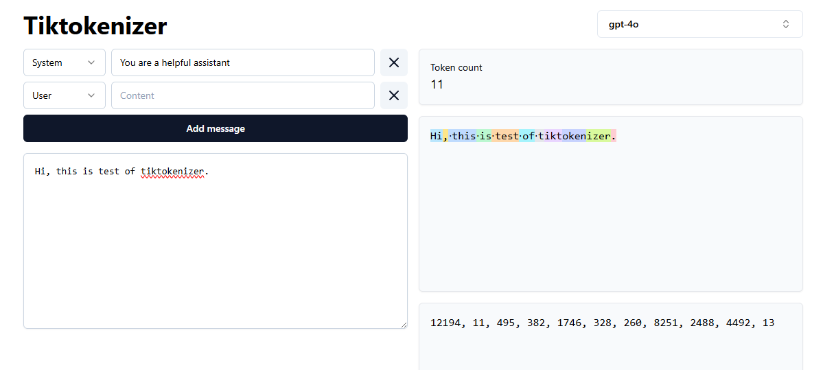 In the image below, you can see a sentence and the tokens after conversion in the GPT-4o model. That is what a model sees when we ask them a question. If you want to play more with this, check out tiktokenizer on how different models convert texts into tokens.