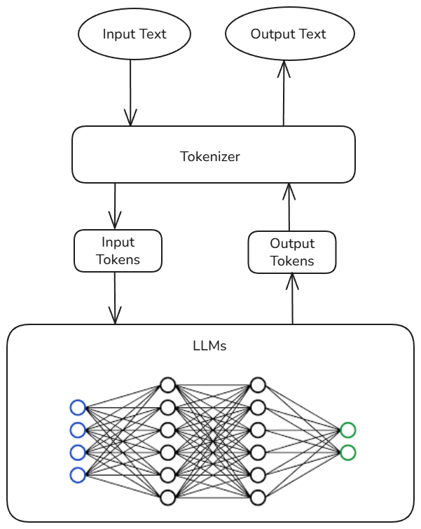 It gives us the freedom to write in English or any human-readable language, and then BPE takes that language and converts it into tokens. In the same way, a model outputs only tokens, and a tokenizer decodes the tokens into the English language. We can see the tokenization flow in this diagram.